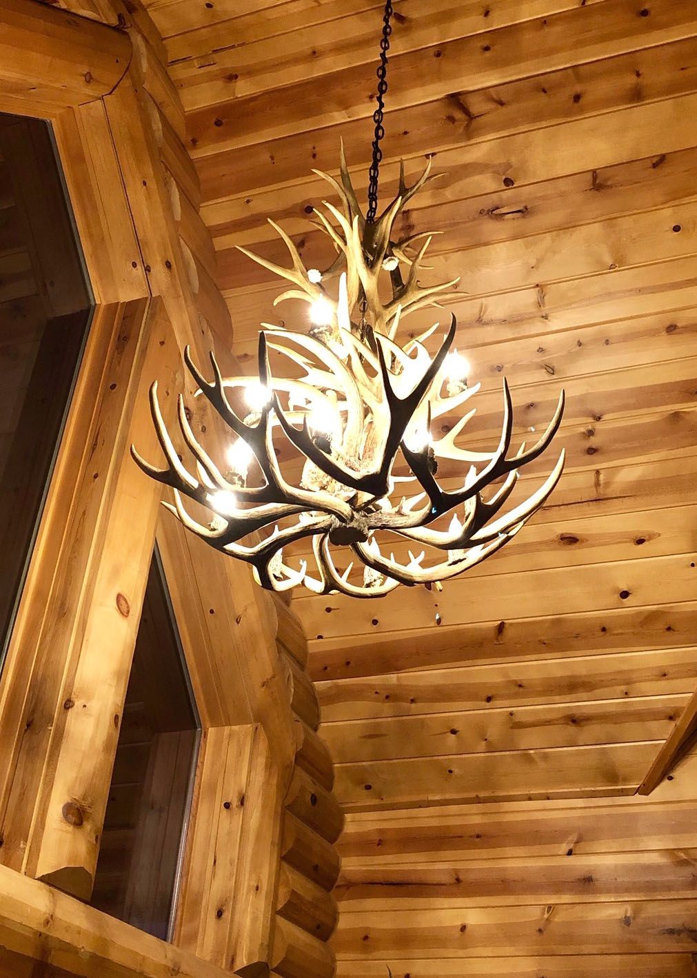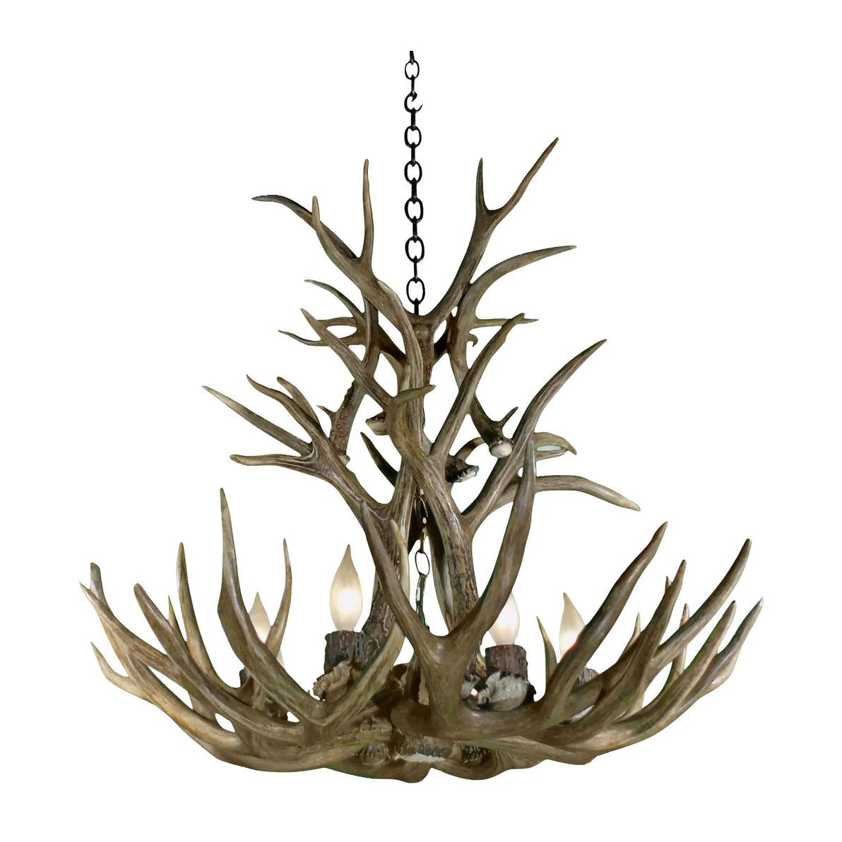- Western rustic nine-light chandelier.